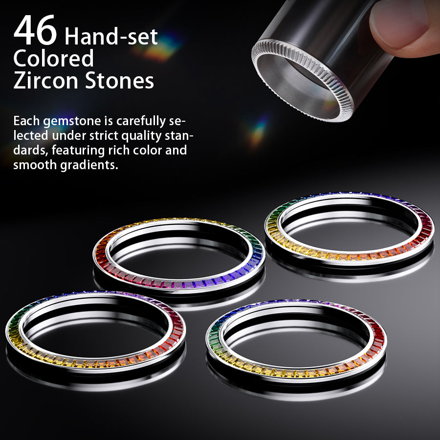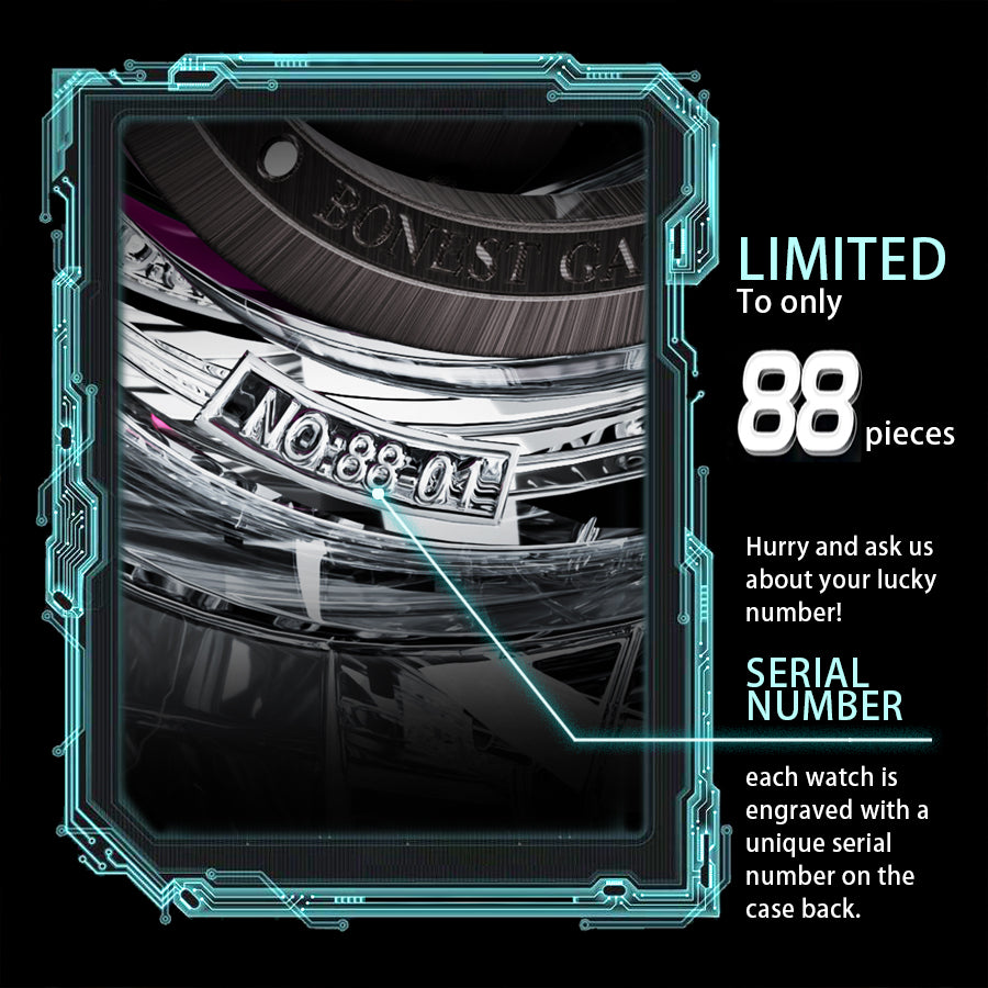 BONEST GATTI Automatic Tourbillon Movement transparent K9 cryatal Case Skeleton Dial Sapphire Crystal Rainbow Bezel K9 CRYATL Bracelet 3ATM Waterproof Luminous BG7002