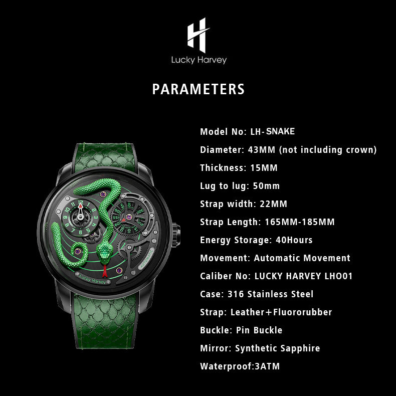 Lucky Harvey Awakening of Insects Silver/Green Snake Automaton Automatic Watch