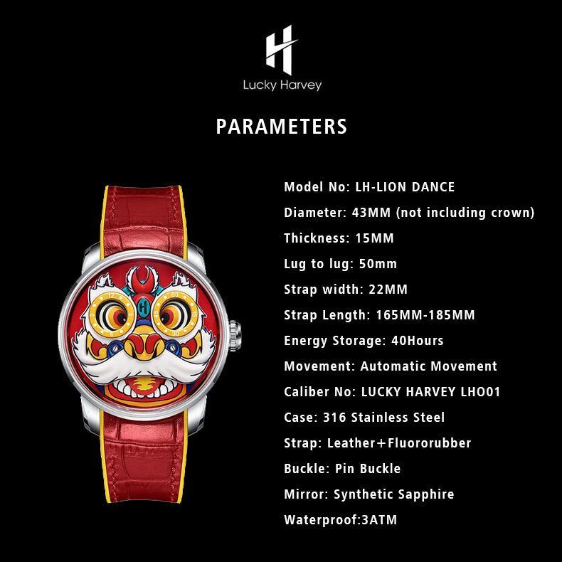 Lucky Harvey Lion Dance Automaton Automatic LH001 Movement Luminous Watch