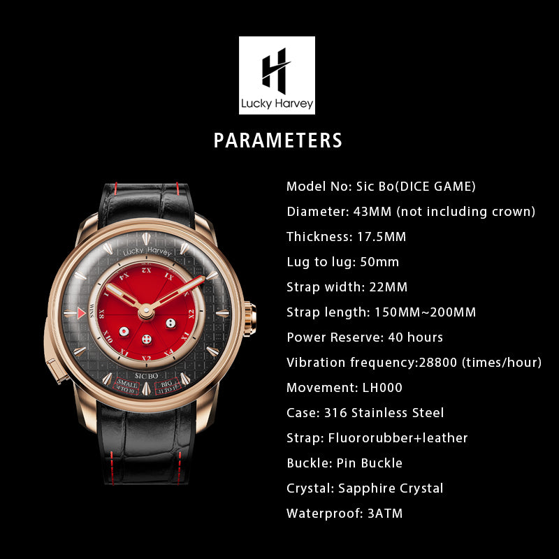 Lucky Harvey Player Series Sic Bo Dice game Automaton Watch