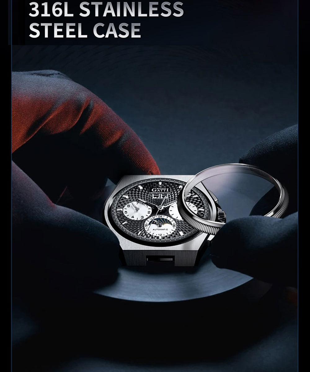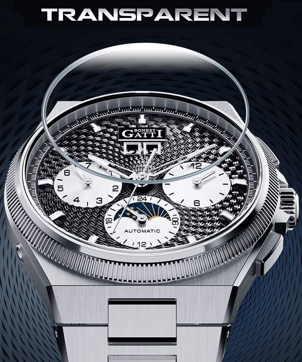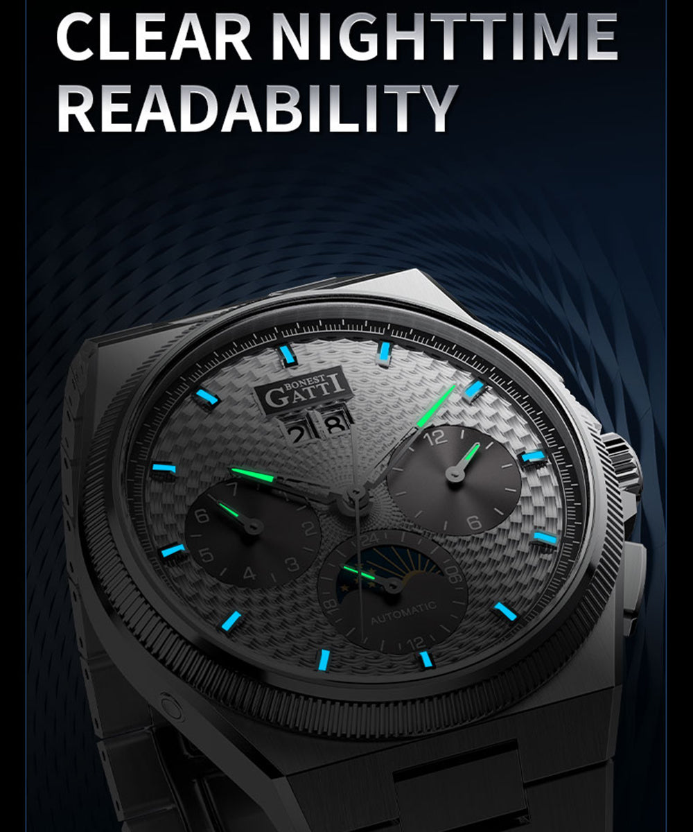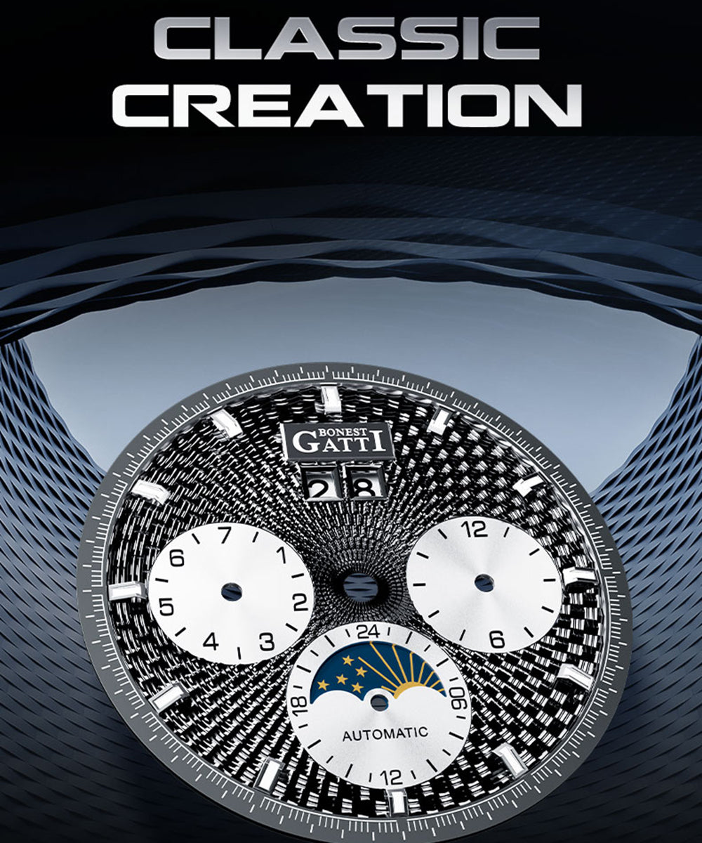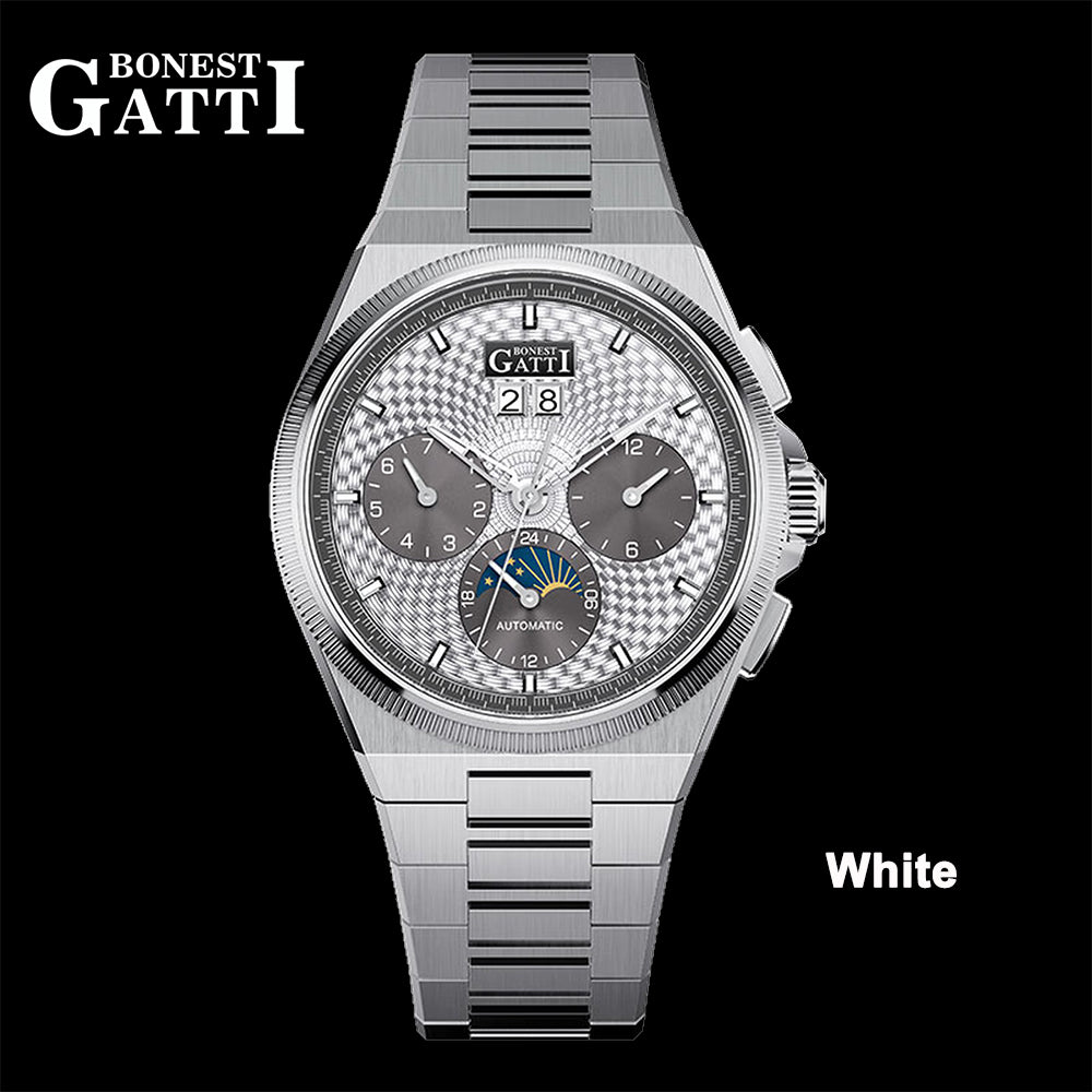 BONEST GATTI Automatic Men Watch Date Week Month Display Self Wind Movement Sapphire Crystal Luminous Watch BG8006