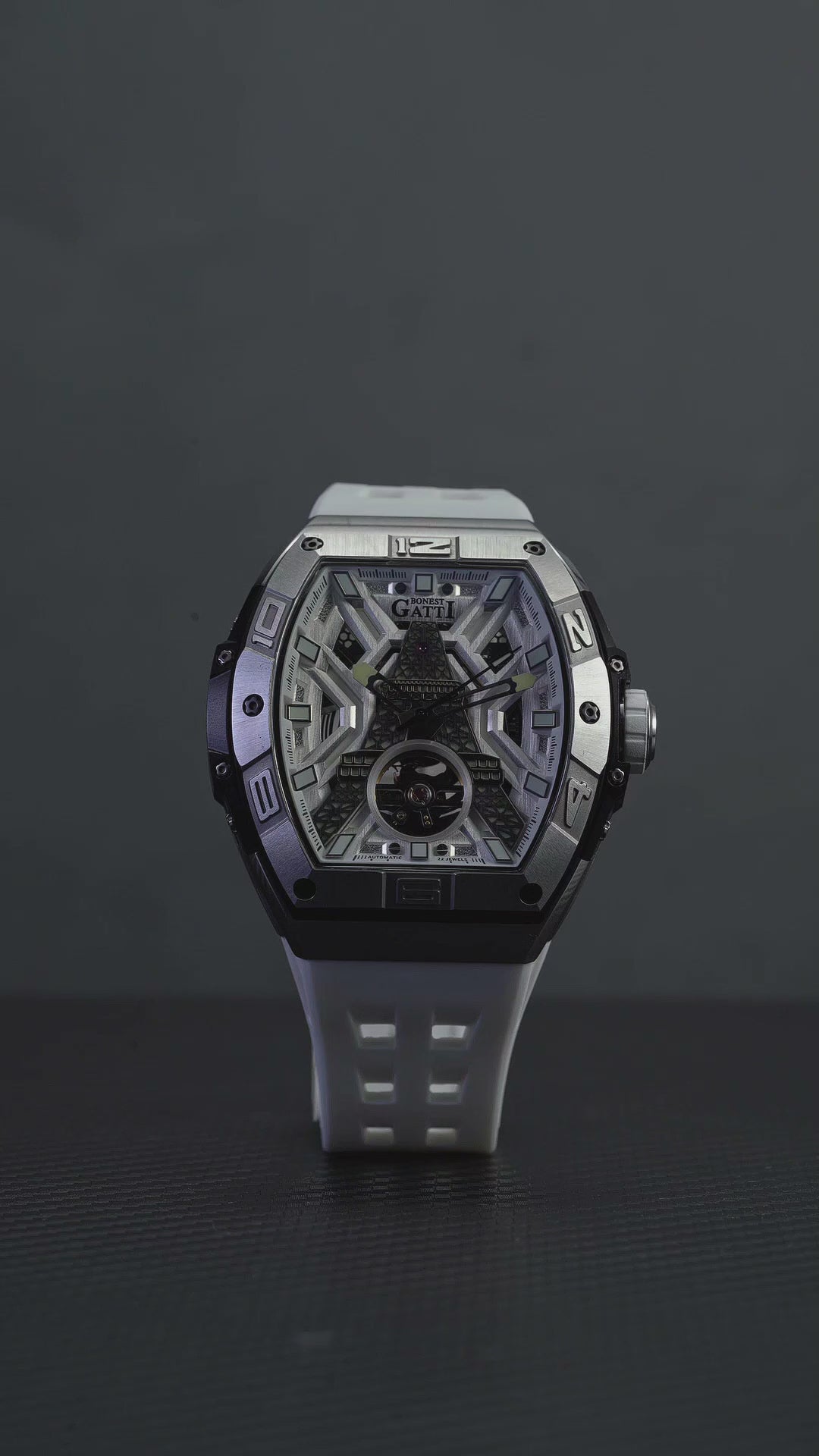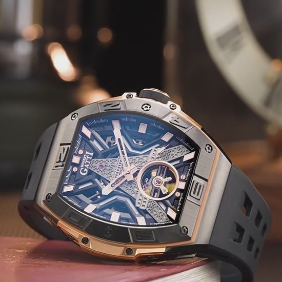 BONEST GATTI Tower Theme Skeleton Tonneau Automatic Men Watch BG5001