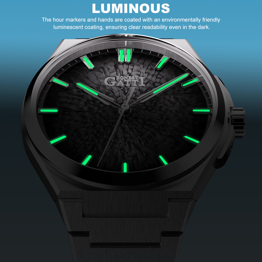 BONEST GATTI Automatic Men Watch Ice Crack Pattern Dial Self Wind Movement Sapphire Crystal Luminous Business Watch BG8013