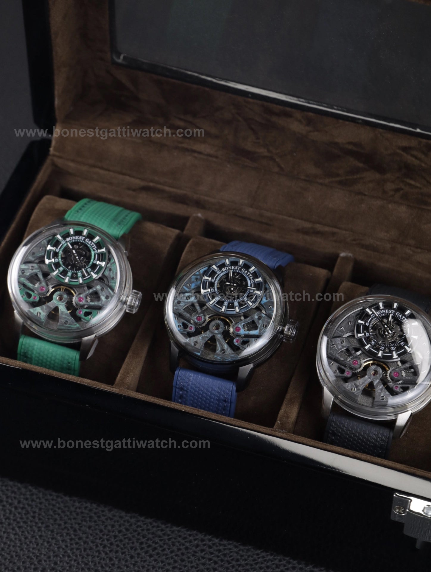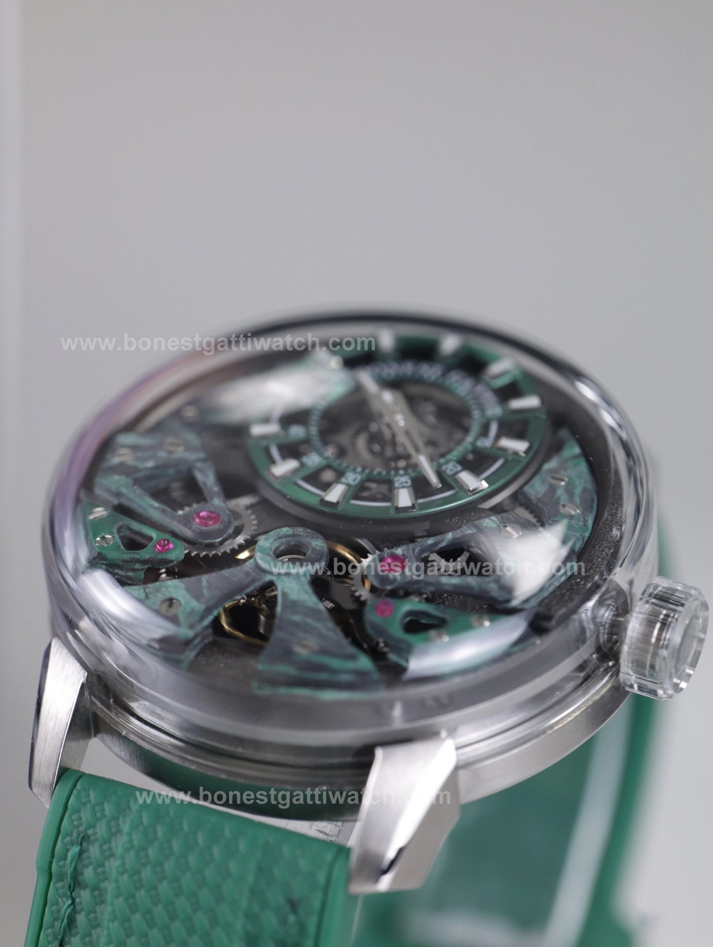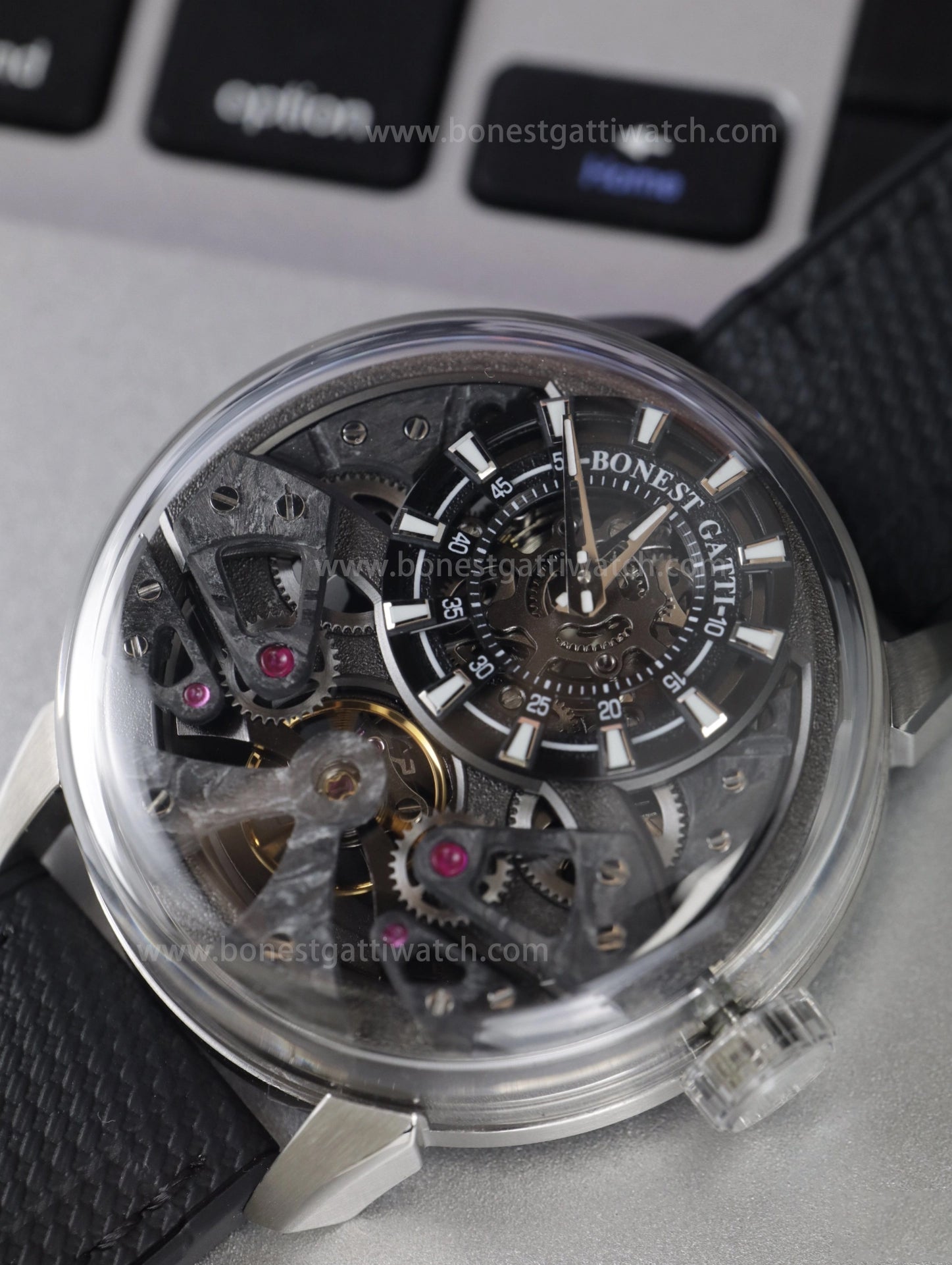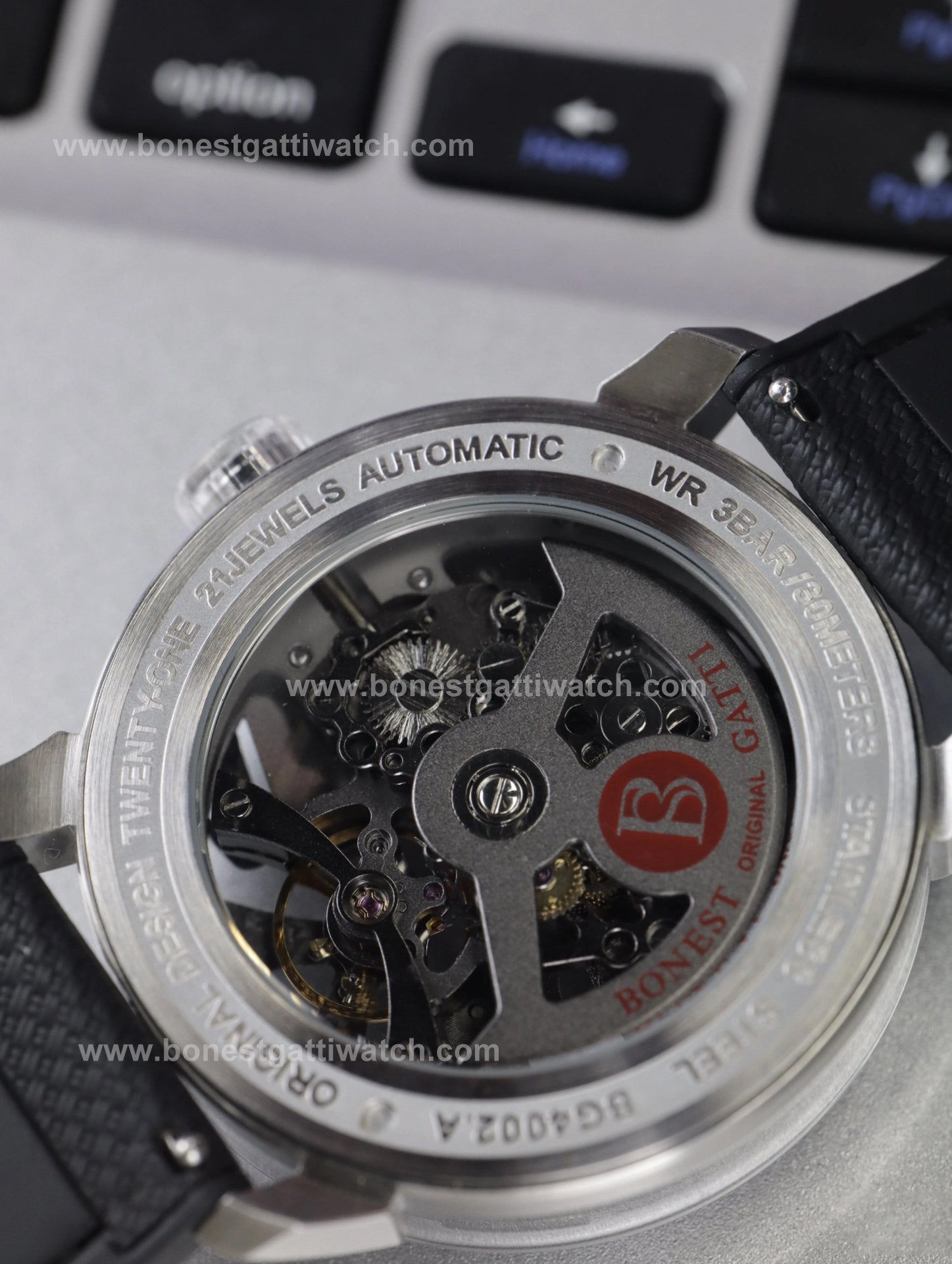 BONEST GATTI Automatic Movement Round Shaped Carbon Fiber Dial watch 316L Case Dome Sapphire Crystal Fluororubber Strap 3ATM Waterproof Luminous BG4002
