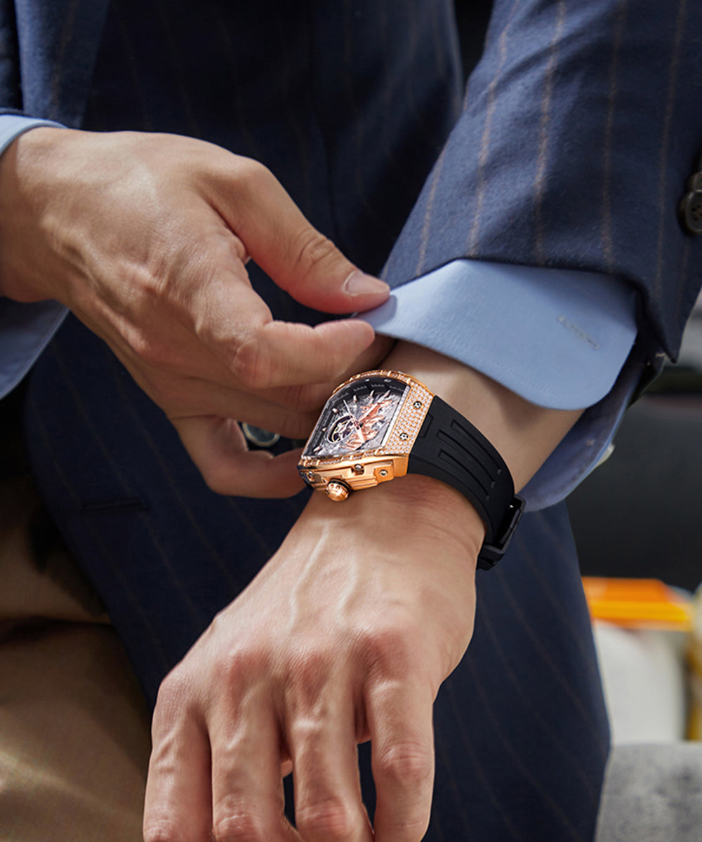 BONEST GATTI Horse Automatic Tonneau Men Watch Zircon Bezel Skeleton Self Wind Movement Sapphire Crystal Luminous Watch BG5006